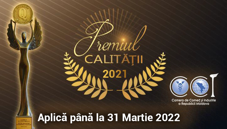 Camera de Comerț și Industrie a Republicii Moldova (CCI a RM), în parteneriat cu Institutul de Standardizare din Moldova (ISM) și Centrul Național de Acreditare din Republica Moldova (MOLDAC) vă invită să participați la concursul „Premiul pentru realizări în domeniul calității produselor și serviciilor” pentru anul 2021. De asemenea, în comun cu Agenția de Stat pentru Proprietatea Intelectuală (AGEPI), Centrul Național Anticorupție (CNA) și Confederaţia Naţională a Sindicatelor din Moldova (CNSM), CCI a RM organizează „Marca Comercială a Anului 2021”.