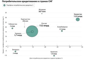 În Kazahstan, creditele de consum s-au majorat cu 28,3%. Portofoliul creditelor de consum a fost de 12,9 miliarde USD. În Kârgâzstan majorarea a fost de – 20,1%, iar portofoliul de credite – 246 mil. USD. Uzbekistan – 18,6%. Portofoliul de credite – 2 miliarde USD. Azerbaidjan – 16%. Portofoliul de credite 2,5 miliarde de lei. Rusia – 16%. Portofoliul de credite – 152 miliarde USD. Ucraina – 15%. Portofoliul de credite – 5,7 miliarde de lei. Belarus – 5,7%. Portofoliul de credite – 2 miliarde USD și Armenia – 10,3%. Portofoliul de credite – 1,8 miliarde USD.