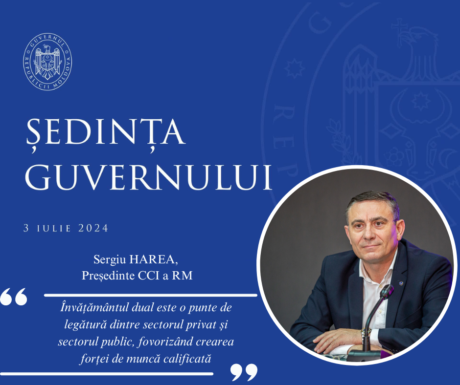 În cadrul ședinței, Sergiu Harea, președintele Camerei de Comerț și Industrie a Republicii Moldova (CCI a RM), a subliniat importanța învățământului dual ca punte de legătură între sectoarele privat și public. El a evidențiat rezultatul întâlnirilor cu peste 1500 de companii în ultimele trei luni, organizate de CCI a RM și Ministerul Educației și Cercetării. Aceste discuții au vizat promovarea învățământului dual în rândul companiilor, cu scopul de a forma forță de muncă calificată, potrivit comunicatului emis de instituția camerală.
