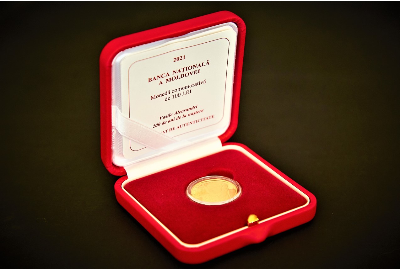Seria „Aleea Clasicilor din Grădina Publică „Ștefan cel Mare și Sfânt” din mun. Chișinău” este îmbogățită cu o monedă comemorativă dedicată împlinirii a 200 de ani de la nașterea lui Vasile Alecsandri – poet, dramaturg, folclorist, om politic, diplomat, membru fondator al Academiei Române, creator al teatrului românesc și al literaturii dramatice în România, personalitate marcantă a Moldovei și a României de-a lungul întregului secol al XIX-lea. Moneda este confecționată din aur, are valoarea nominală de 100 lei și un tiraj de 150 unități.