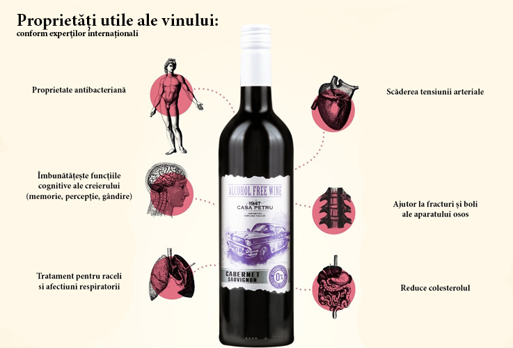 Și nu este o fantezie. Vinuri fără alcool CASA PETRU! Ca compoziție sunt identice cu cele clasice, cu exceptia singurului ingredient – ALCOOLUL.