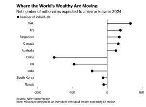 Destinația de top pentru milionari este Emiratele Arabe Unite, care urmează să atragă 6.700 de persoane bogate în acest an. O destinație preferată de multă vreme a persoanelor bogate din India și Orientul Mijlociu, țara a primit mii de ruși în urma războiului din Ucraina. Aproximativ 1.000 de milionari vor părăsi Rusia în acest an – mai puțin de jumătate din numărul care au plecat anul trecut și în scădere de la 8.500 în 2022.