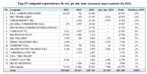 Din cele 149,7 mii tone orz exportate în 2023, 97% au revenit primelor 20 companii-lideri. Pe primul loc, cu o cotă de 15%, s-a plasat compania Agrofloris-Nord SRL (controlată de milioanrul cerealier Vaja Jhashi) cu un volum total exportat de 22 698 tone. Două companii dețin cote egale de 14% – Demir-Agro SRL – frima fratelui Irinei Vlah – (21 357 tone) și Orom-Imexpo SRL (21 218 tone). În anul 2024, lider în exporturile de orz este Orom-Imexpo SRL (9 075 tone), urmată de Demir-Agro SRL (6 614 tone).