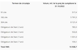 Până la finele anului 2022 Ministerul Finanțelor trebuie să răscumpere VMS în sumă de 4 143,4 mil. lei la preț de cumpărare, inclusiv BT în sumă de 4026,5 mil. lei și OS – 116,9 mil. lei.