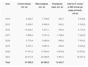 Ministerul Finanțelor emite valori mobiliare de stat (VMS) pe piața internă pentru refinanțarea datoriei de stat interne acumulate în anii anteriori, în special, în perioada 2014-2021: