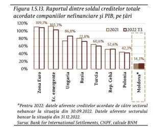 Pentru trimestrul I 2023, respondenții au indicat o menținere a cererii de creditare. Nivelul de intermediere financiară al Republicii Moldova, pe segmentul companiilor nefinanciare, a rămas foarte scăzut, comparativ cu alte state din regiune.