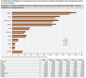 Investitorilor din Bulgaria le corespunde cea mai mare pondere în poziția investițiilor directe (capital propriu) în sectorul bancar.