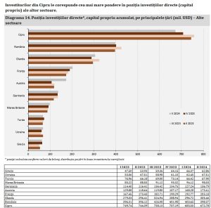 Investitorilor din Cipru le corespunde cea mai mare pondere în poziția investițiilor directe (capital propriu) ale altor sectoare.