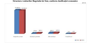 Veniturile totale ale bugetului de stat au atins suma de 15,6 miliarde de lei, în creștere cu doar 0,5% față de aceeași perioadă a anului anterior. Această creștere marginală a veniturilor vine în contextul unei situații economice dificile, arată datele Ministerului Finanțelor.