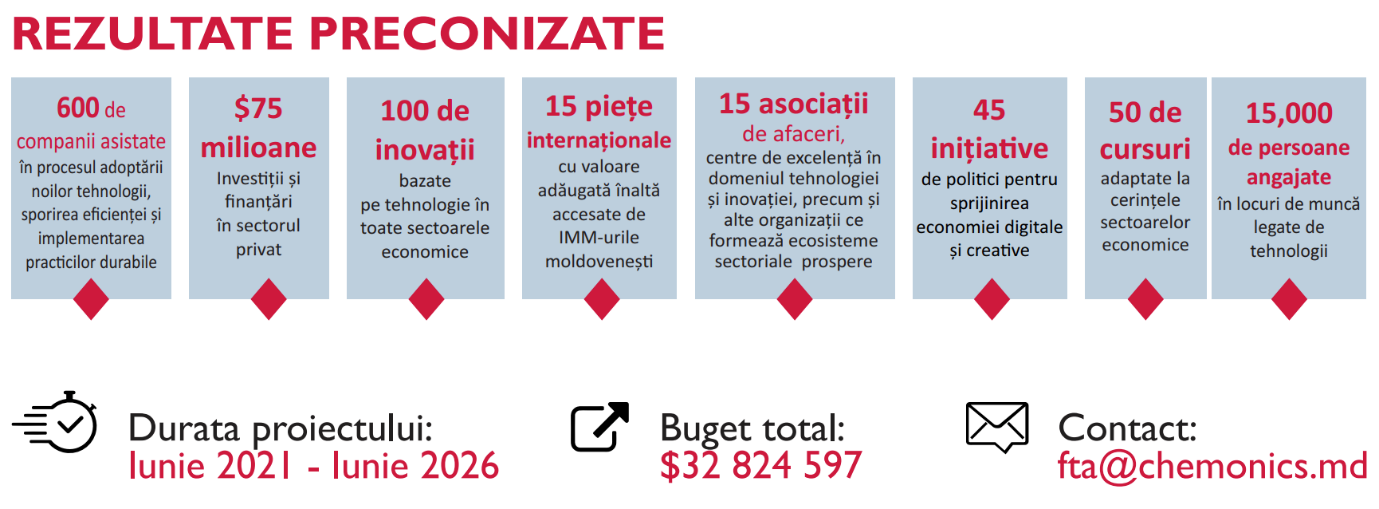 Proiectul Tehnologiile Viitorului (FTA) va continua activitățile implementate în ultimii 15 ani, cu asistența USAID, în sectorul dezvoltării competitivității sectoarelor economice strategice din R. Moldova și vine ca răspuns la tendințele globale de digitalizare și inovare. FTA va crea oportunități pentru tineri, investiții și parteneriate, iar tehnologia și inovația din toate sectoarele vor propulsa afacerile moldovenești spre viitor. Totodată, inițiativa va contribui la îmbunătățirea cadrului legislativ pentru a oferi facilități și a spori competitivitatea locală și internațională a industriilor TIC pentru o activitate mai eficientă și competitivă național și internațional a industriilor (TIC), inginerie, industria ușoară, industriile creative și digital media ce va stimula dezvoltarea tehnologiilor viitorului care stau la baza economiei digitale.
