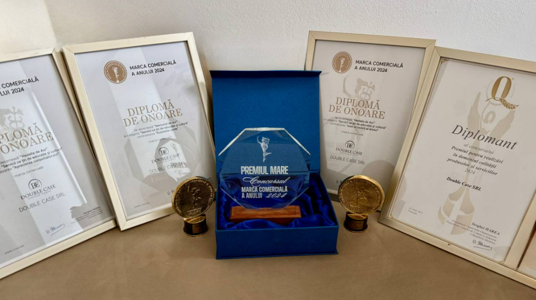 Recunoscută oficial drept Marca Comercială a Anului 2024 de către Camera de Comerț și Industrie a Republicii Moldova. Această distincție este o recunoaștere a muncii, dedicării și impactului pe care Double Case îl are asupra formării traderilor de succes și dezvoltarea educație financiară. Double Case a mai obținut și două medalii de aur la categoria Servicii ce țin de educație și cultură, nominalizarea Aprecierea consumatorului și IMM-ul favorit al anului — titluri care reflectă încrederea traderilor și poziția încrezătoare în educația în domeniul trading-ului.