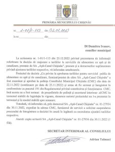 Apă Canal Chișinăul solicită Consiliului Municipal Chișinău să anuleze decizia votată anterior cu privire dublarea tarifului la apă în Capitală, potrivit scrisorii publicată de către deputatul PAS, Vasilie Grădinaru.