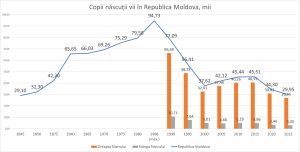 „Pe malul drept al Nistrului sau născut 26,95 mii copii, iar pe malul Stâng datele însă nu sunt, dar estimativ am avut circa 3 mii de nașteri. În total pe ambele maluri în 2022 sau născut de 3 ori mai puțini copii decât recordul istoric absolut din 1986, când în Moldova au fost 94,73 mii nașteri”, a punctat Ioniță.
