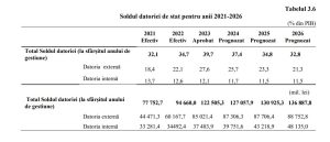 Pe termen mediu, ponderea datoriei de stat în PIB se va diminua de la 37,4 % la sfârșitul anului 2024 până la 32,8 % la sfârșitul anului 2026, fapt ce se explică prin ritmul de creștere mai mare al PIB-ului prognozat comparativ cu ritmul de creștere al soldului datoriei de stat. În valori nominale soldul datoriei de stat va înregistra o majorare de la 127 057,9 mil. lei la sfârșitul anului 2024 până la 136 887,8 mil. lei la sfârșitul anului 2026, potrivit estimărilor Ministerului Finanțelor.