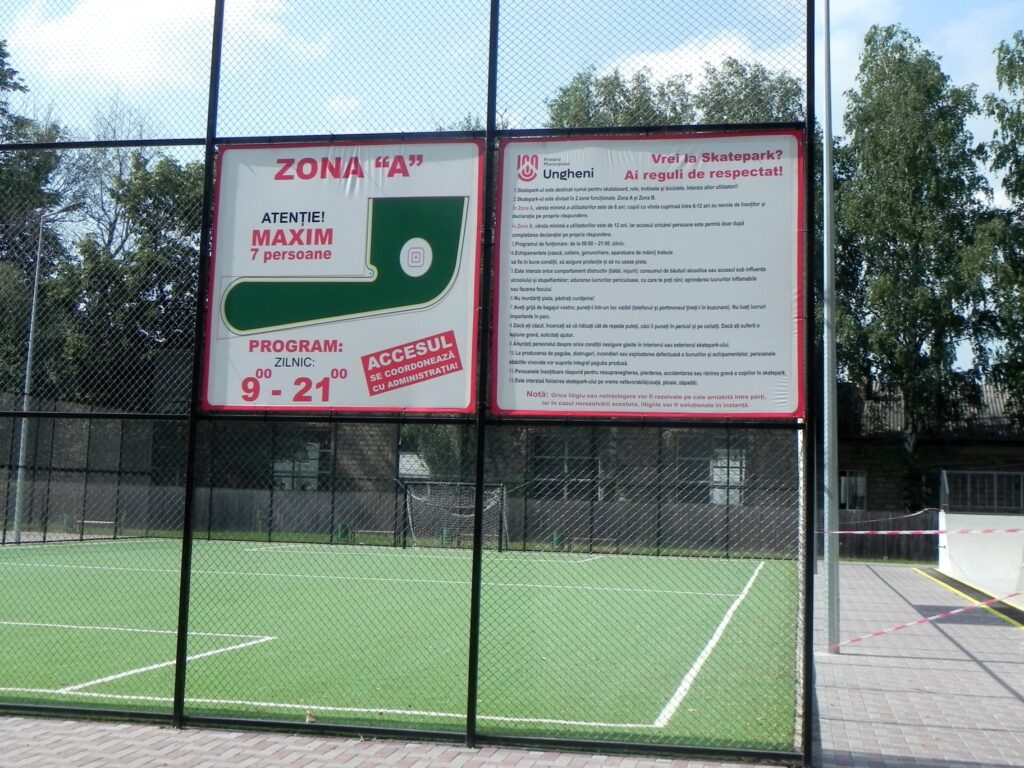 Cu Regulile de utilizare a skatepark-ului puteți lua cunoștință pe loc, acestea fiind afișate la un loc vizibil.