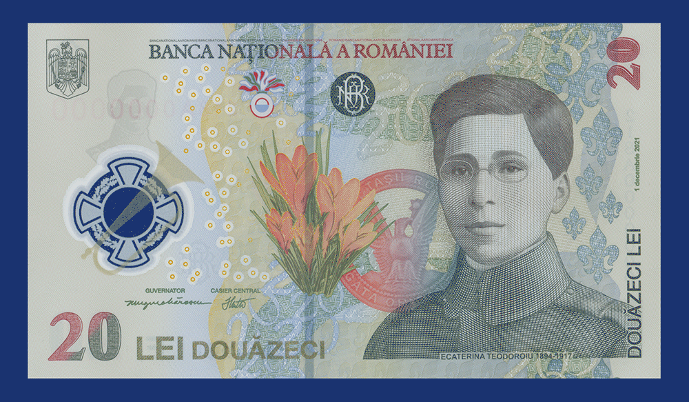 Începând de astăzi, 1 decembrie 2021, Banca Naţională a României (BNR) pune în circulaţie o bancnotă cu valoarea nominală de 20 lei, fiind prima bancnotă cu putere circulatorie pe care este reprezentată o personalitate feminină: Ecaterina Teodoroiu.