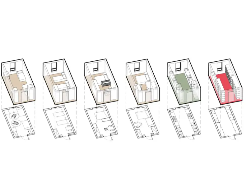 Modulele, care măsoară 6,6 metri pe 3,3 metri fiecare, vor fi grupate în secțiuni rezidențiale autosuficiente, care au băi comune, bucătării comune și spații comune pentru ca rezidenții să interacționeze între ei.