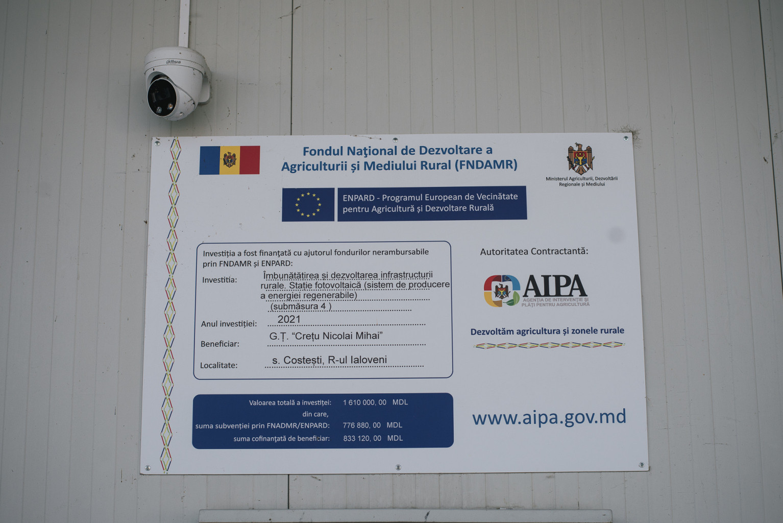 Nicolae Crețu, din satul Costești, raionul Ialoveni, dezvoltă o afacere în domeniul viticulturii de 15 ani. Pentru a păstra strugurii, a construit un depozit frigorific cu o capacitate de 600 de tone. Fiind electrician de profesie, antreprenorul a încercat mereu să găsească soluții de a reduce cheltuielile lunare pentru energia electrică. Astfel, a decis să instaleze panouri fotovoltaice. Întrucât instalarea și procurarea dispozitivelor este destul de scumpă, agricultorul a depus dosarul pentru a beneficia de subvențiile acordate de Agenția de Intervenție și Plăți pentru Agricultură (AIPA). În urma concursului a fost desemnat unul dintre câștigători.