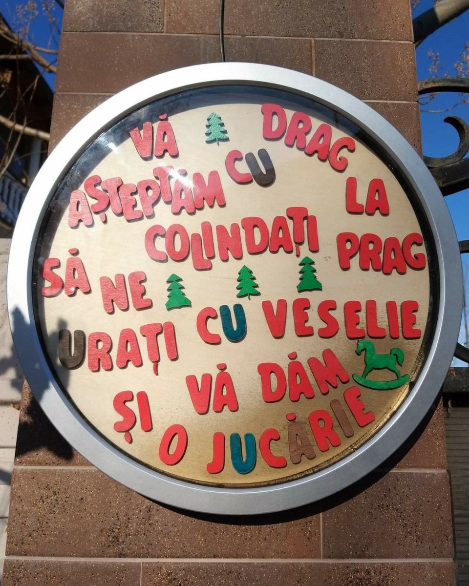 „Vă aşteptăm cu drag,Să ne colindați la prag,Ne urați cu veselie,Şi vă dăm o jucărie!!!”