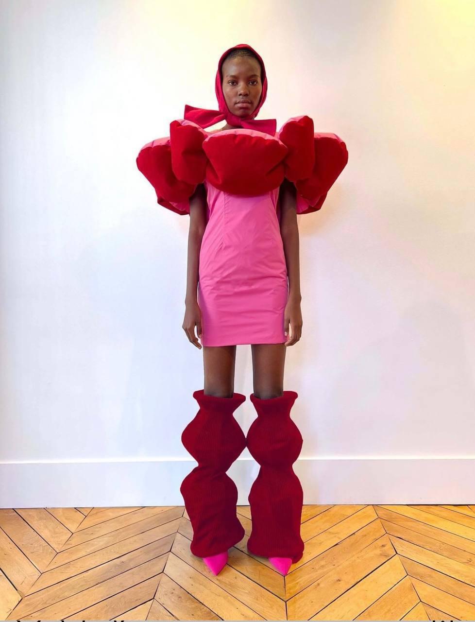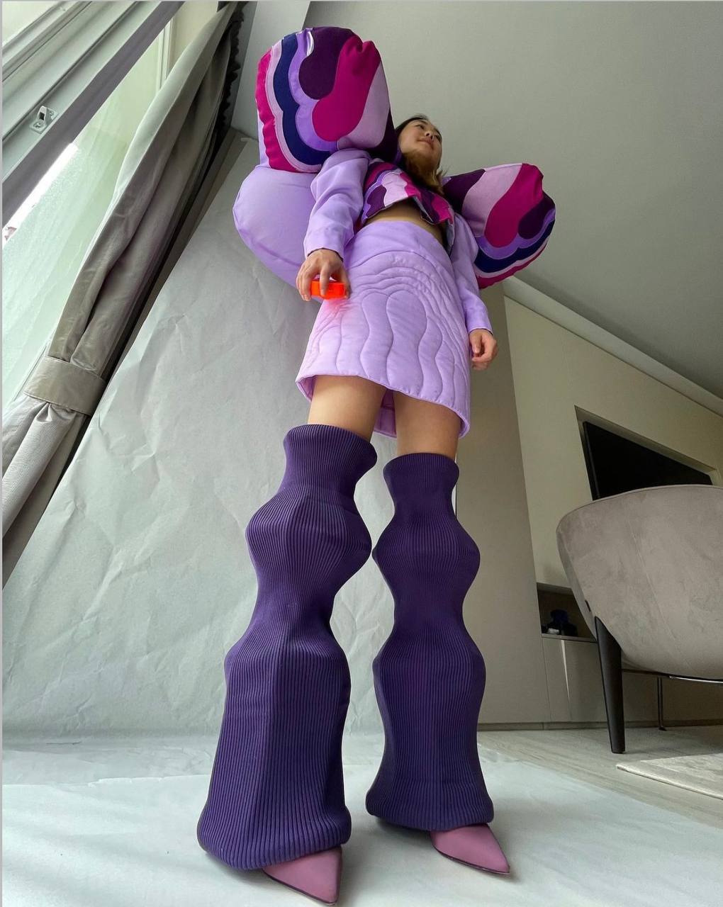 După cum puteți observa, Celine Kwan creează ținute deosebite, integrând diverse obiecte din sufragerie, încălțăminte în formă de vază și pălării în formă de pernă.