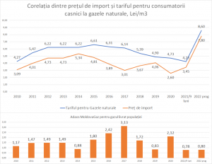 ANRE în noiembrie poate accepta o majorare de până la 8,6-9,0 lei/m3, iar următoarea majorare în caz de necesitate să fie aplicată spre sfârșitul trimestrul I din 2022. Dacă nu se va accepta această abordare, atunci din păcate pentru noi toți, tariful va fi de 10,26 lai/m3, exact atât cât solicită Moldovagaz”, a opinat economistul.