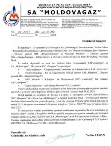 Potrivit scrisorii, o delegație a „Moldovagaz” s-a deplasat la începutul lunii octombrie la Sankt Petersburg pentru negocieri cu conducerea Gazprom. Din delegație a făcut parte și Alexandr Martînov, directorul general al „Tiraspoltransgaz – Transnistria”.