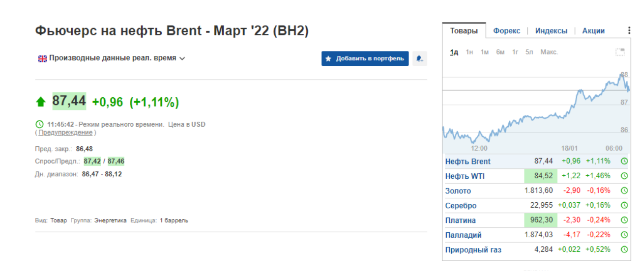 Prețul pentru petrolul West Texas Intermediate a crescut pentru scurt timp peste 85 de dolari pe baril pentru prima dată din octombrie. De asemenea, începând cu ora 10:47, ora Kievului, costul petrolului BRENT este de 87,44 USD.