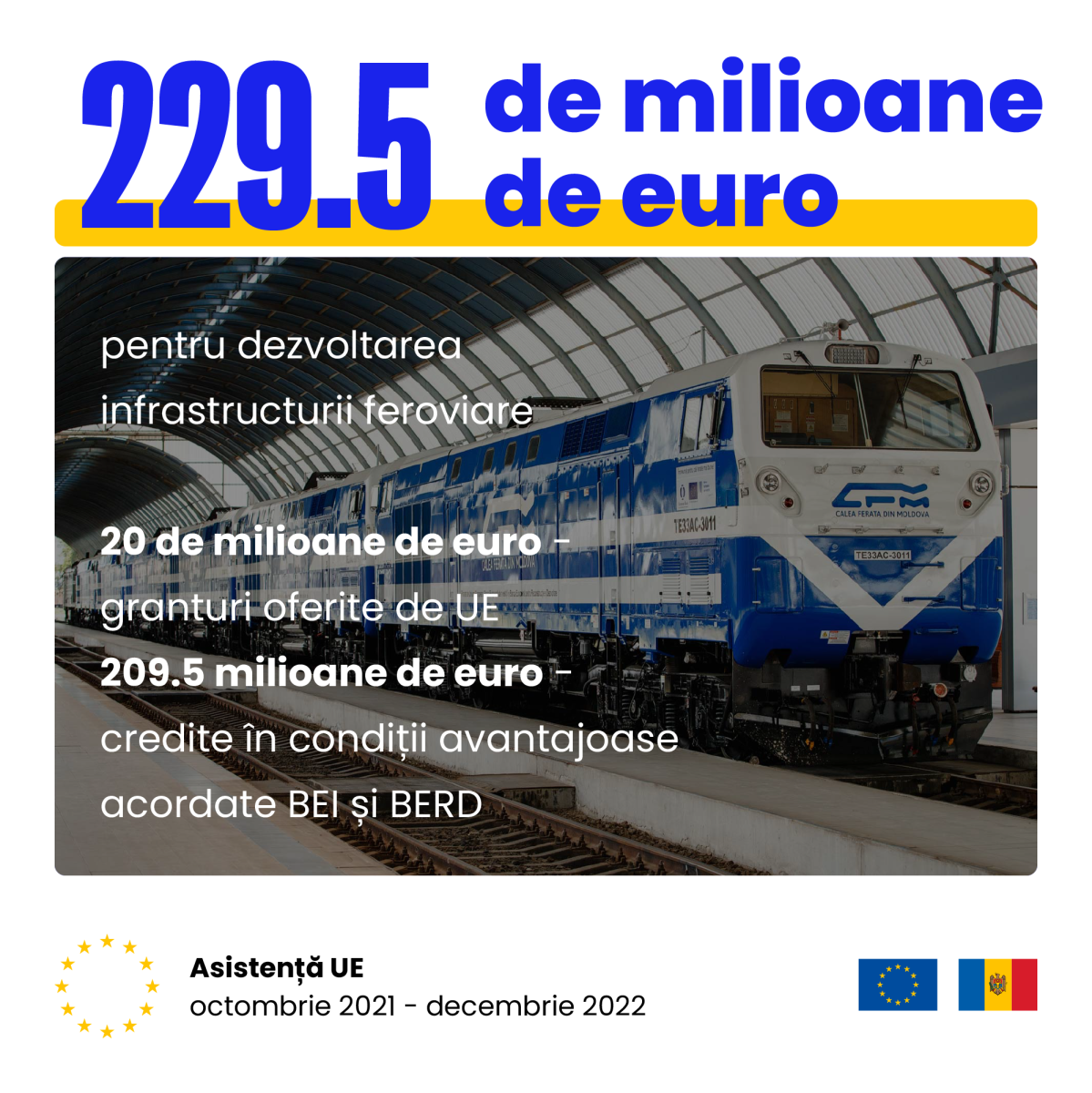 - 229,5 de milioane de euro pentru dezvoltarea infrastructurii feroviare.