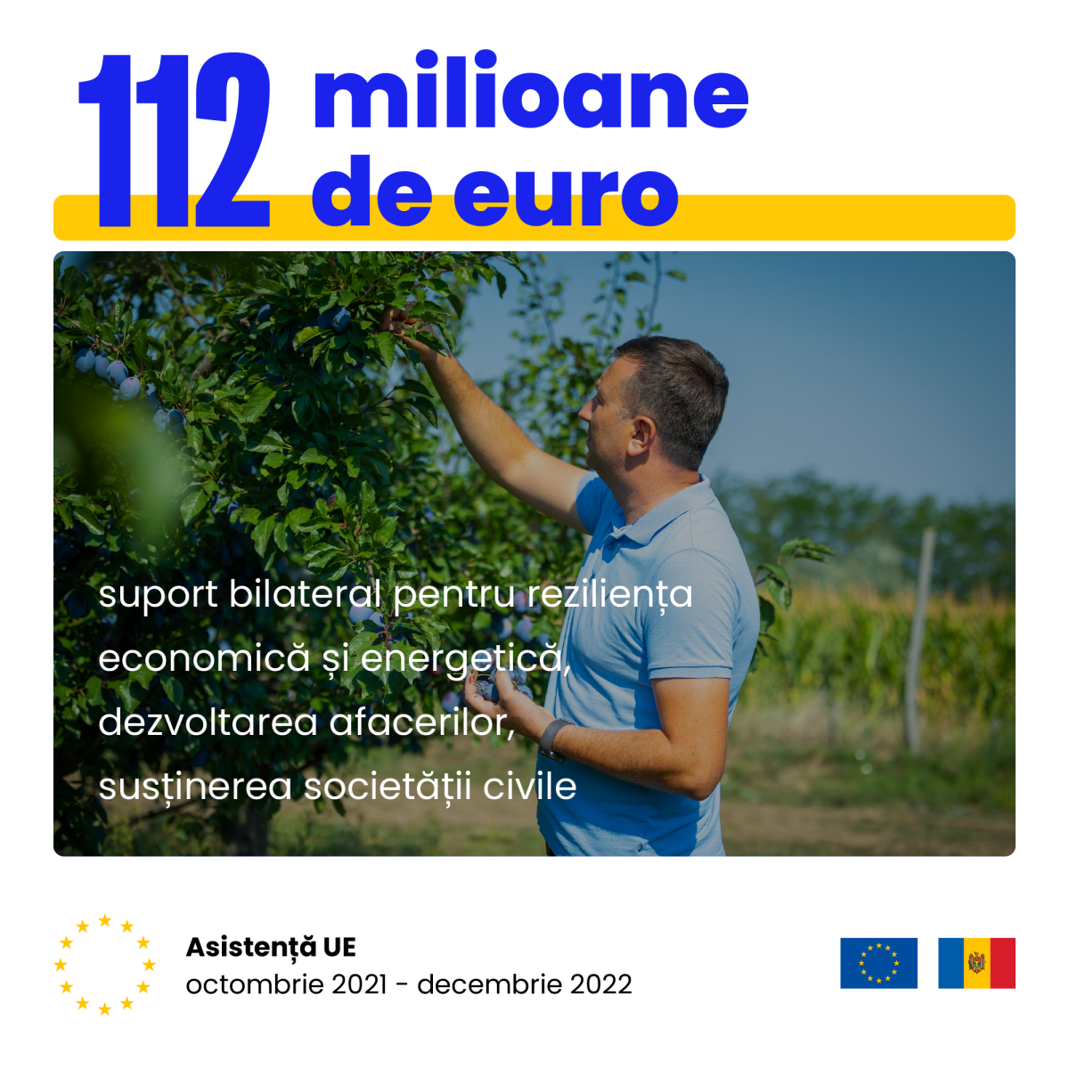 - 112 milioane de euro pentru reabilitarea economică, dezvoltarea afacerilor și susținerea societății civile;
