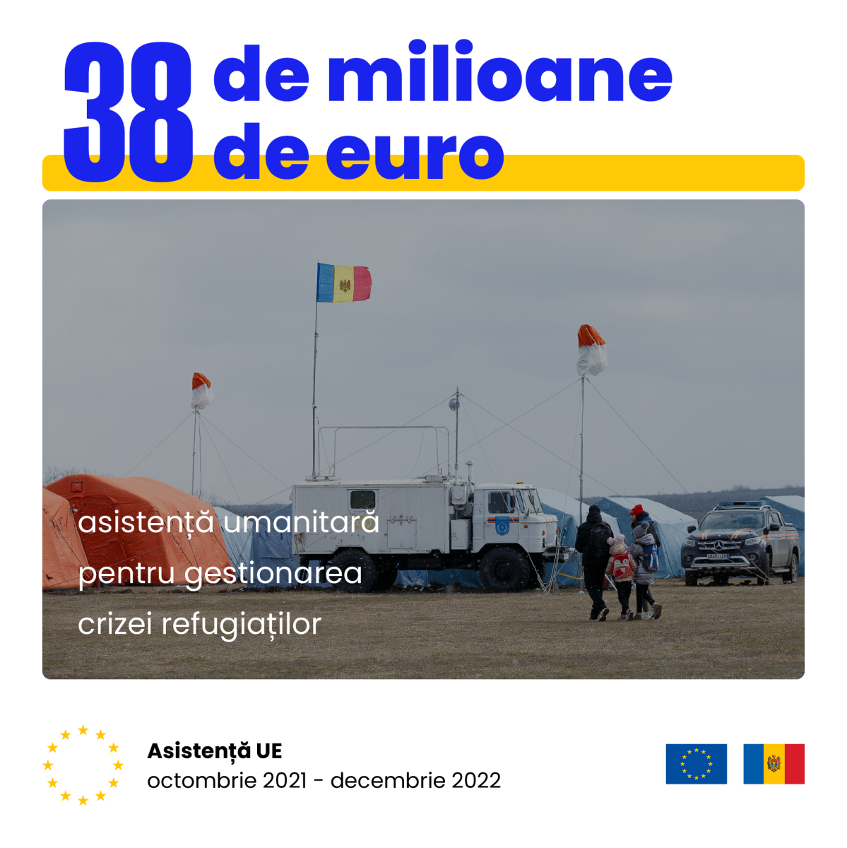 În acest an marcat de crize și incertitudine, Uniunea Europeană (UE) s-a aflat aproape de cetățenii Republicii Moldova. În perioada octombrie 2021 – decembrie 2022, UE a oferit suport în valoare de peste 840 de milioane de euro pentru a depăși provocările.