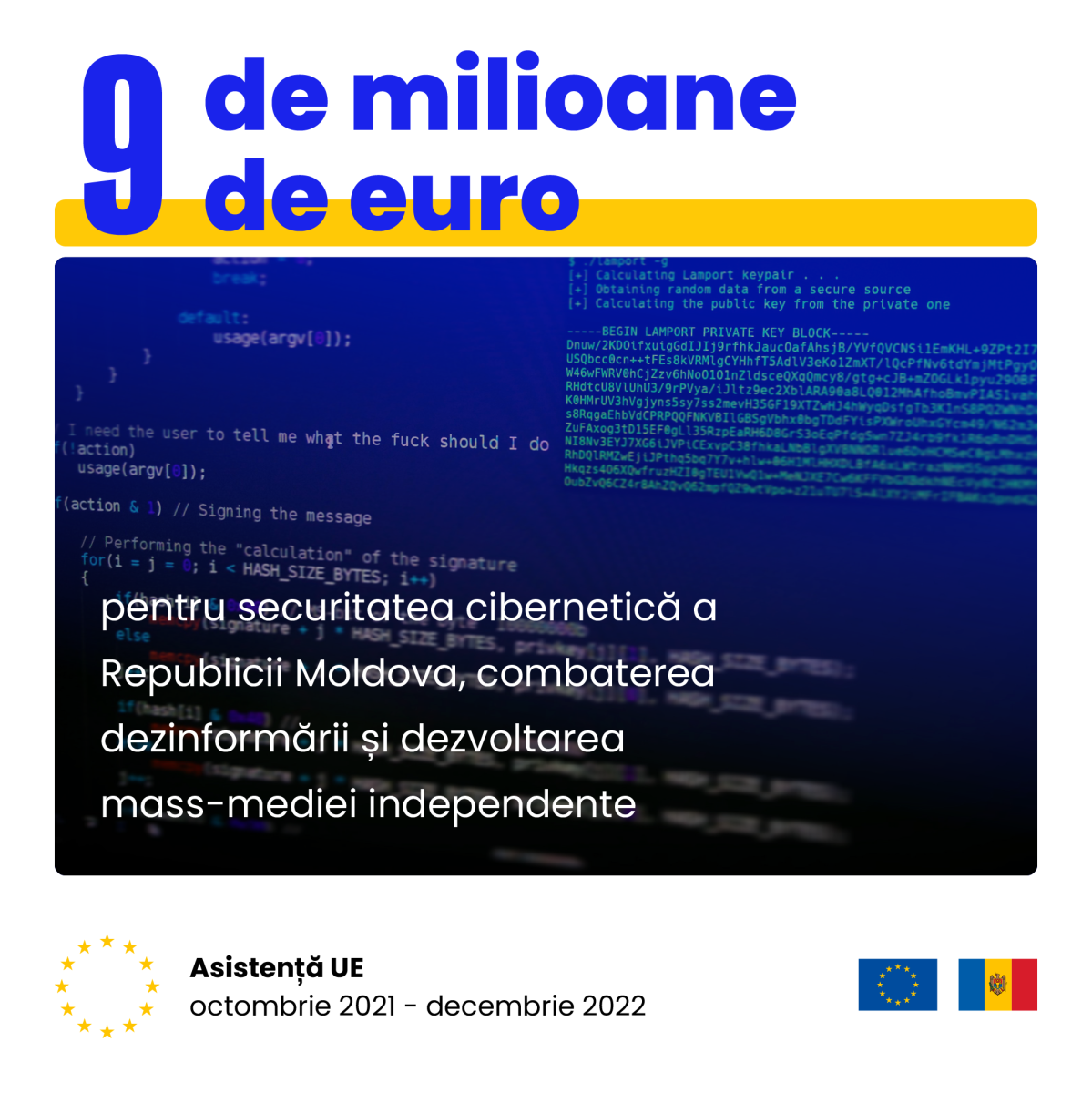 - 9 milioane de euro pentru securitatea cibernetică a Republicii Moldova, combaterea dezinformării și dezvoltarea mass-mediei independente;