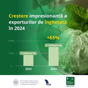 Cantitatea de înghețată exportată a crescut de la 1 milion de kilograme în ianuarie-mai 2023 la 1,7 milioane de kilograme în 2024, confirmând interesul tot mai mare al consumatorilor internaționali pentru produsele moldovenești. Această creștere subliniază potențialul de succes al industriei alimentare din Republica Moldova pe piața globală.