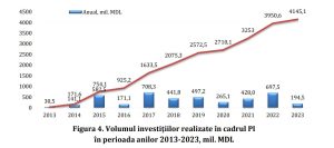 În 2023, cele mai mari investiții au fost realizate în „Tracom” (173,2 milioane lei, adică 89,0% din total) și „Răut” (10,7 milioane lei, adică 5,5%). Celelalte parcuri industriale au realizat investiții de 10,5 milioane lei (5,4%).