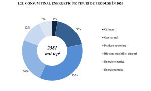 Ponderea cea mai mare în consumul de energie o au produsele petroliere – 35%, biocombustibilul – 24%, gazul natural – 19 și energia electrică – 12%. O pondere mică o are energia termică – 7% și cărbunele – 3%.