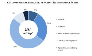 Datele BNS relevă că cel mai mare consum de energie aparține populației – 50%, transport – 26%, comerț și servicii publice – 10%, iar industria – 9%. Ceai mai puțin consumă agricultura – 5%.