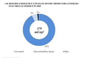 În ceea ce privește sursele de producerea energiei electrice și termice gazul are ponderea cea mai mare – 93%, biocombustibilul – 5%, iar din susrsle hidro (centrala Costești Stînca) – 2%.