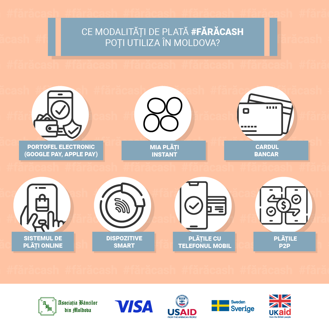 Acest articol a fost creat ca parte a  campaniei #fărăcash, organizată de Asociația Băncilor din Moldova (ABM) în parteneriat cu sistemul internațional de plăți Visa și cu sprijinul Proiectului Tehnologiile Viitorului în Moldova, finanțat de USAID, Suedia și Marea Britanie, vizează informarea populației despre beneficiile plăților fără numerar. Scopul campaniei este de a promova utilizarea plăților digitale ca metodă de plată principală și de a încuraja adoptarea acestora în activitățile zilnice ale moldovenilor.