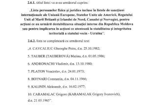 Potrivit Dispoziției, 7 persoane incluse anterior în listele de sancțiuni internaționale ale Uniunii Europene, Statelor Unite ale Americii, Regatului Unit al Marii Britanii și Irlandei de Nord, Canadei și Norvegiei pe motive precum destabilizarea situației interne din Republica Moldova sau implicarea în acțiuni ce atentează la statalitatea și integritatea teritorială a Ucrainei, au fost introduse și în lista de sancțiuni aprobată de către Comisia pentru Situații Excepționale.