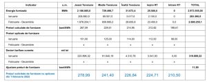 - 224,71 bani /kWh pentru energia electrica furnizata la punctele de ieșire din rețelele electrice de transport,