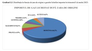 Importurile de gaz lichefiat în primul trimestru al anului curent au fost efectuate din mai multe țări, dar ca și în cazul motorinei și benzinei, furnizor de bază devine România, cota acesteia constituind 66,5%. Totodată, în premieră pentru Republica Moldova, pe parcursul primului trimestru al anului curent au fost importate gaze lichefiate din țări precum Franța cu 4,9%; Nigeria cu 5,5%; Letonia 4,8% și SUA 3,6 %.