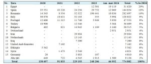 Analiza detaliată a datelor arată că exporturile din prima jumătate a anului 2024 au egalat nivelul din 2022, anul de vârf al exporturilor, cu 461.076 de tone pe an și 271.053 de tone în primele 5 luni. Companiile principale în exportul de floarea-soarelui au fost Rusagro-Prim, OromImpex și Ancom-Agro, iar destinațiile principale au fost România, Turcia și Bulgaria.