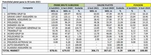 Potrivit CNPF, ASTERRA GRUP conduce clasamentul general, cu o valoare a primelor subscrise de 153,8 milioane lei și o cotă de piață de 17,5%, urmat de GRAWE CARAT Asigurări care a vândut în primul semestru din 2021 polițe în valoare de 137,3 milioane lei. Cota de piață a asiguratorului e de 15,6%.