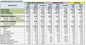 Asigurările generale au cea mai mare pondere în portofoliul pieței și au depășit 94,7% din totalul primelor brute subscrise de companiile de asigurări, constituind 832,1 milioane lei. Pe de alta parte, ponderea asigurărilor de viață în portofoliul pieței a scăzut cu 5,22% pe fondul scăderii primelor brute subscrise față de anul trecut pe acest segment cu 7,8%. Primele brute subscrise din asigurările de viață pentru primul semestru al anului 2021 au constituit 45,82 milioane lei.