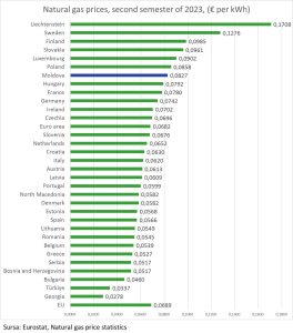 În a doua jumătate a anului 2023, moldovenii au achitat unul din cele mai mari tarife la gazele naturale din Europa și cel mai mare din regiune, contată economistul Veceaslav Ioniță, care face referire la datele Eurostat.