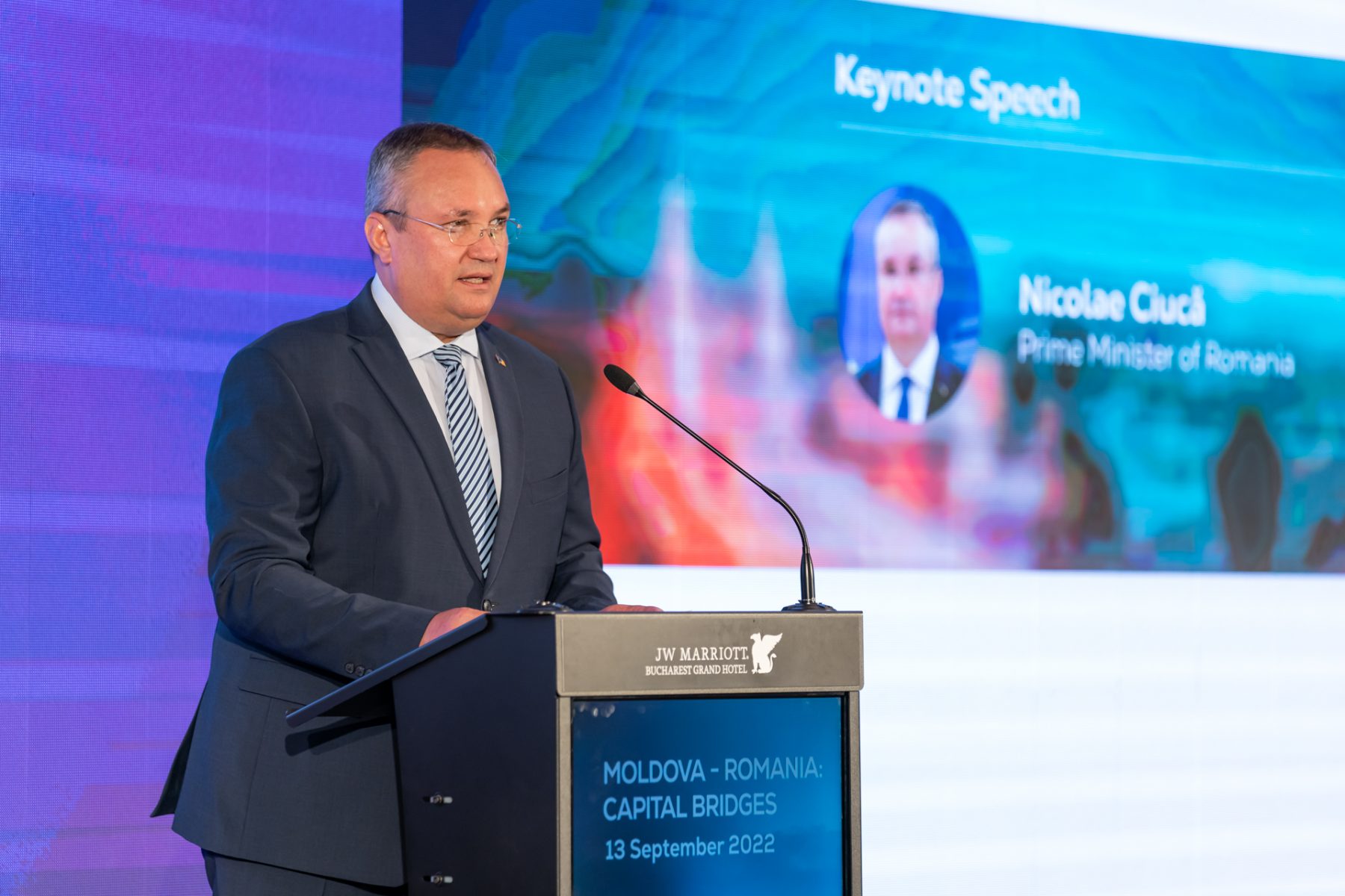 Forumul Moldova-România Capital Bridges, unde am participat împreună cu premierul Natalia Gavrilița, a fost un bun prilej să reiterez sprijinul activ al României pentru împlinirea visului Republicii Moldova: integrarea în familia europeană. În actualul context geopolitic și economic, plin de provocări pentru economiile României și Republicii Moldova, întărim punțile care ne unesc pentru a pune în valoare oportunitățile celor două economii. Dezvoltarea relațiilor comerciale și promovarea investițiilor sunt esențiale pentru consolidarea Parteneriatului Strategic și pentru misiunea noastră care se va încheia atunci când ne vom putea bucura împreună de beneficiile statutului de membru al UE”,  a declarat Prim-ministrul României, Nicolae Ionel Ciucă.