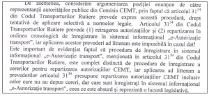 Repartizarea CEMT-urilor este echitabilă fiind aplicat Codul transporturilor rutiere nr.150/2014, care spune expres că autorizațiile CEMT repartizate şi neridicate vor fi eliberate operatorilor de transport rutier care nu au beneficiat de autorizații CEMT, în ordinea cronologică de înregistrare în sistemul informațional „e-Autorizaţie transport”, contra unei taxe stabilite de Nomenclatorul actelor permisive, aprobat prin Legea nr.160/2011 privind reglementarea prin autorizare a activității de întreprinzător.