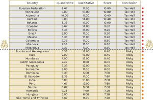 Rusia și Venezuela împart primul loc în categoria „Tax Hell”, considerate cele mai nefavorabile state pentru contribuabili. Republica Moldova urmează în zona „iadului fiscal”, cu un scor de 8,8 și locul 11 din 82 de economii analizate. Clasarea o plasează lângă țări cu reputație fiscală negativă precum Belarus, Argentina sau Brazilia.