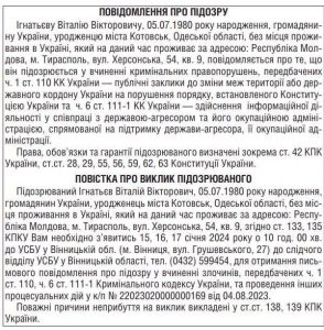 Reprezentantul Tiraspolului la negocierile privind reglementarea transnistreană, Vitalii Ignatiev, cunoscut și ca șeful diplomației autoproclamate a regiunii transnistrene, este acuzat de “trădare de patrie” și “încălcare a integrității teritoriale” din partea autorităților ucrainene.