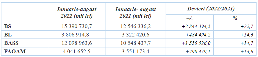 Totodată, la Fondurile asigurărilor obligatorii de asistență medicală (FAOAM) s-au acumulat 4,0 miliarde lei, ceea ce constituie cu 490,5 milioane lei mai mult în comparație cu perioada similară a anului 2021 sau cu 13,8 %.