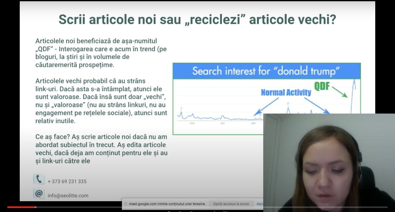 Alina Hasnaș, directoare executivă la SEOLITTE.COM a predat colegilor din cadrul companiei tot ce cunoaște despre optimizarea site-urilor. Întrucât i-a plăcut experiența, Alina Hasnaș anunță despre lansarea unui curs despre tot ce înseamnă SEO și promovarea corectă a unui site pentru oameni din exteriorul companiei.